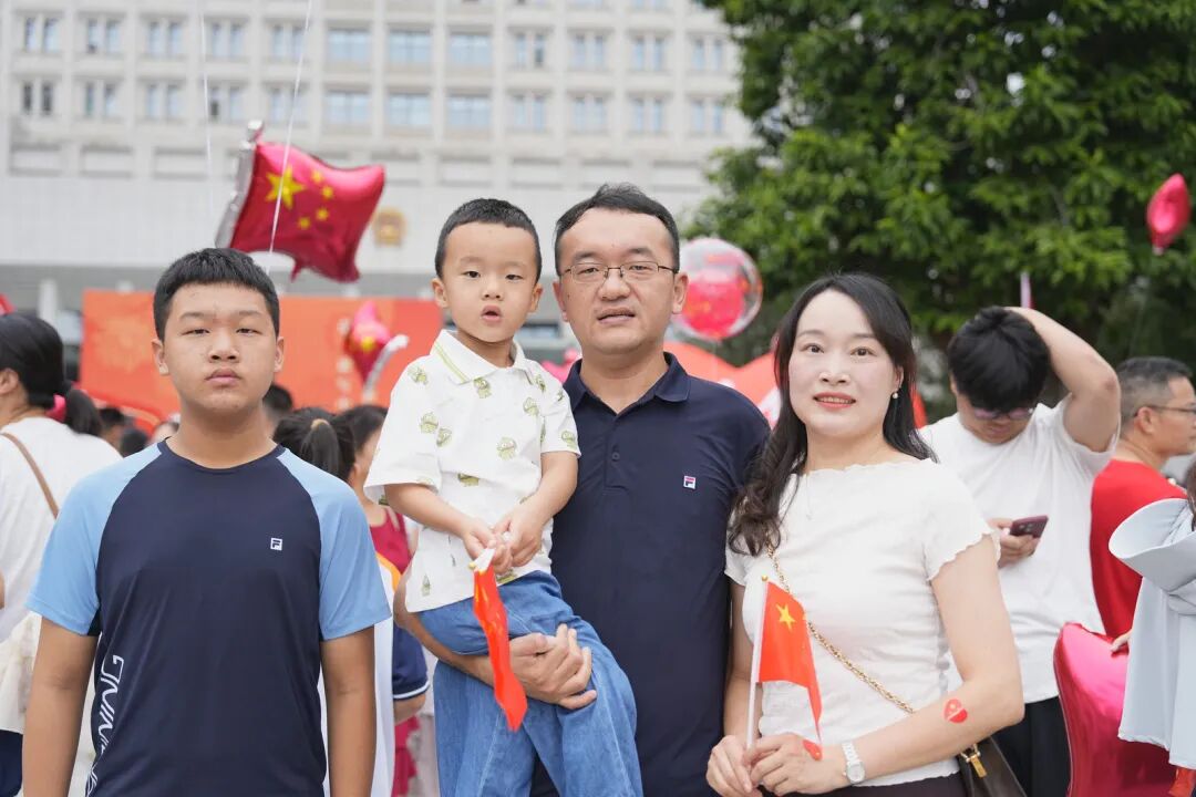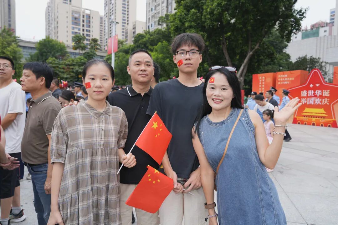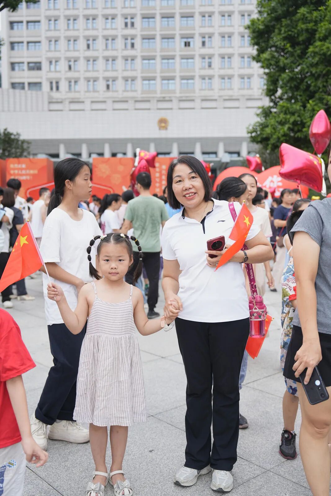 不少群众手持国旗、气球,
