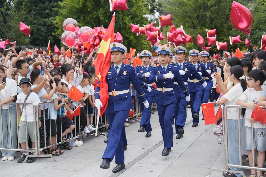 英姿飒爽的武警官兵昂首阔步,