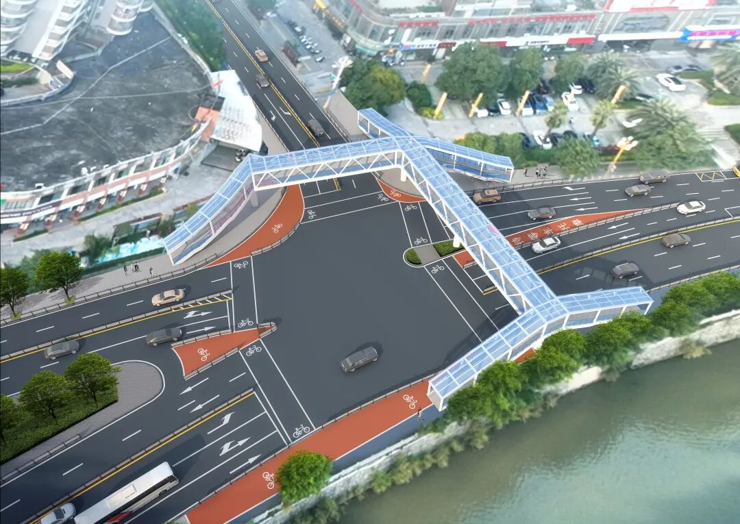 锦城路天桥位于凤城镇锦城路与河滨北路交叉口处,分别横跨锦城路与河滨北路。主桥全长69.6米,宽度4米,主梁采用钢箱梁结构,梯道宽度为3米,总投资约500万元。据悉,该项目正在进行招标工作,拟近期进场施工。
