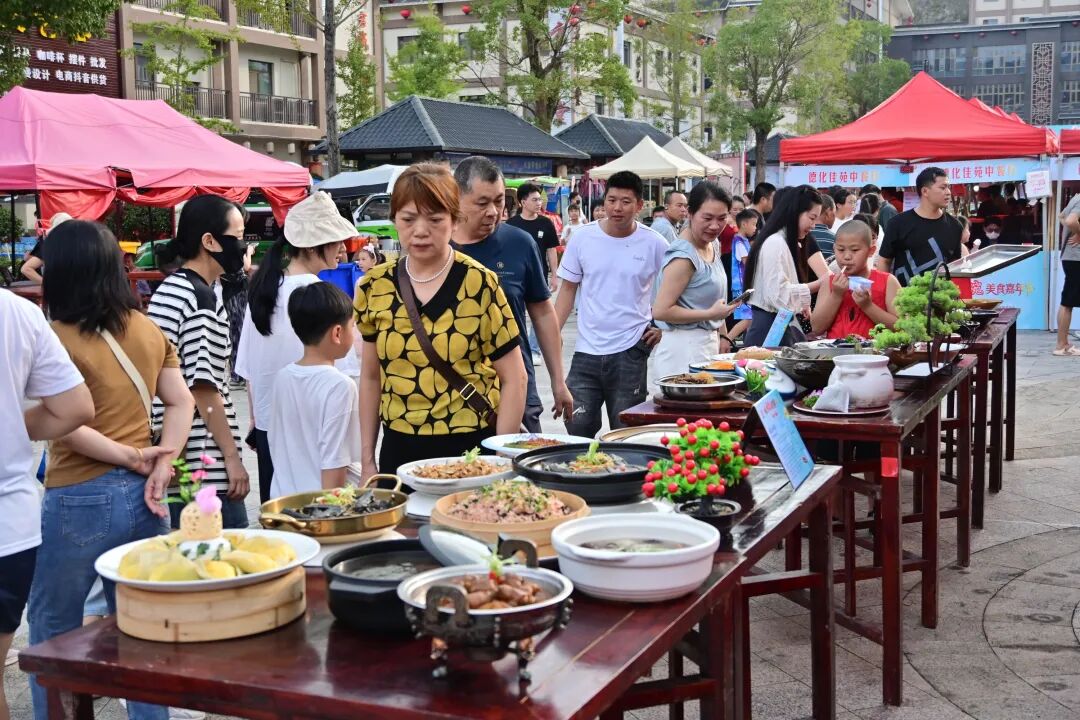 作为活动核心的中国茶具城主会场,一进门就被浓厚的节日氛围包裹。全新打造的“村碗”IP主题打卡点成了游客必到之处,大家纷纷驻足拍照,定格独特的瓷都记忆;“一店一碗”暨“一店一桌菜”特色宴席区内,精致瓷器盛放着各地风味美食,香气四溢,引得游客频频驻足观赏、品尝。与此同时,茶具城内120家陶瓷商户同步推出“一件也是批发价”特惠活动,精致的茶具、陶瓷摆件吸引不少游客挑选采购,实现“赏美食、购美器”一站式体验。