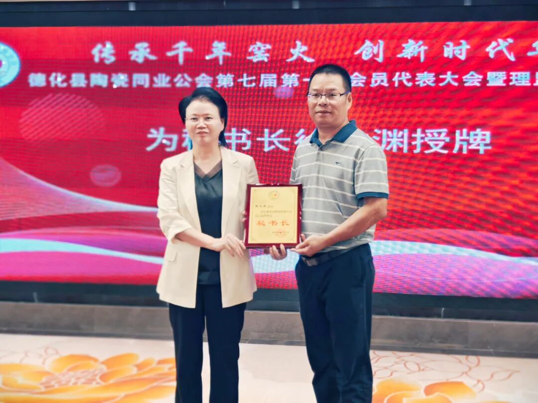 9月29日,德化县陶瓷同业公会第七届第一次会员代表大会召开,选举产生新一届理监事会班子成员,曾俩相当选为县陶瓷同业公会第七届会长。