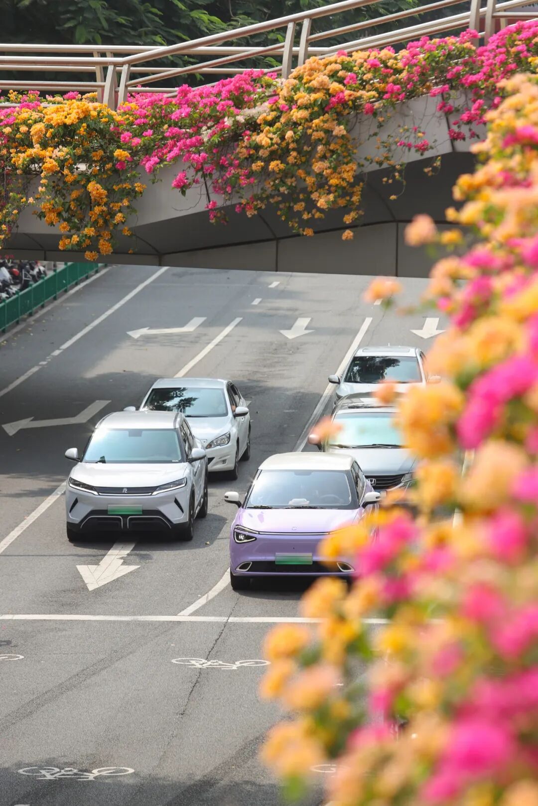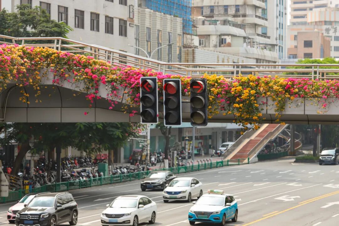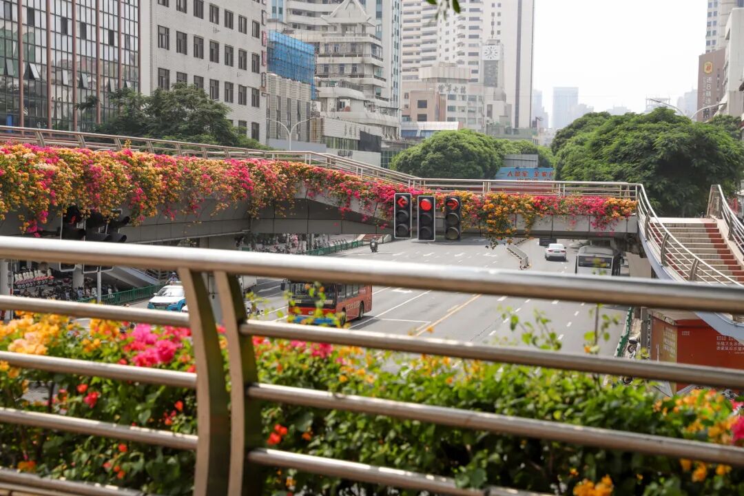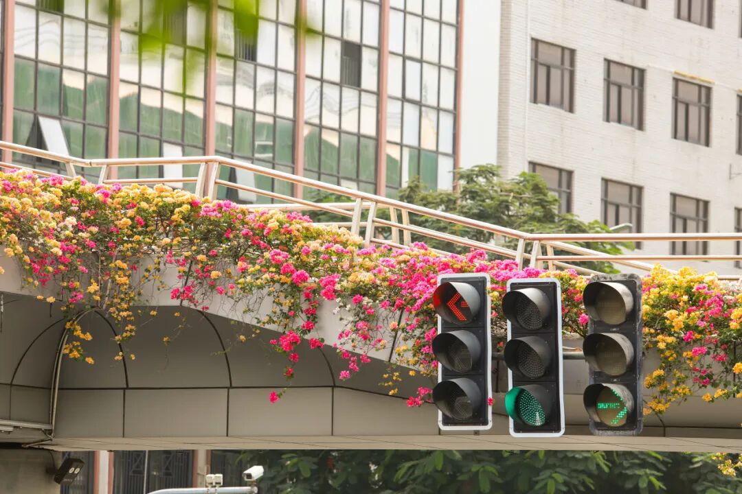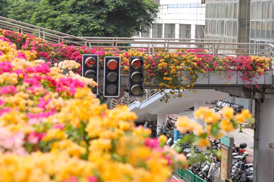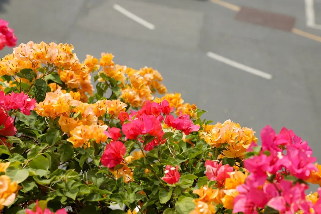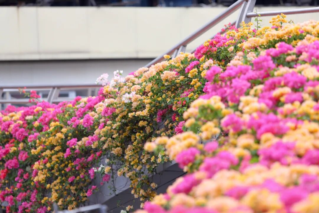 嫣红、粉紫、橙黄的花瓣层层叠叠
