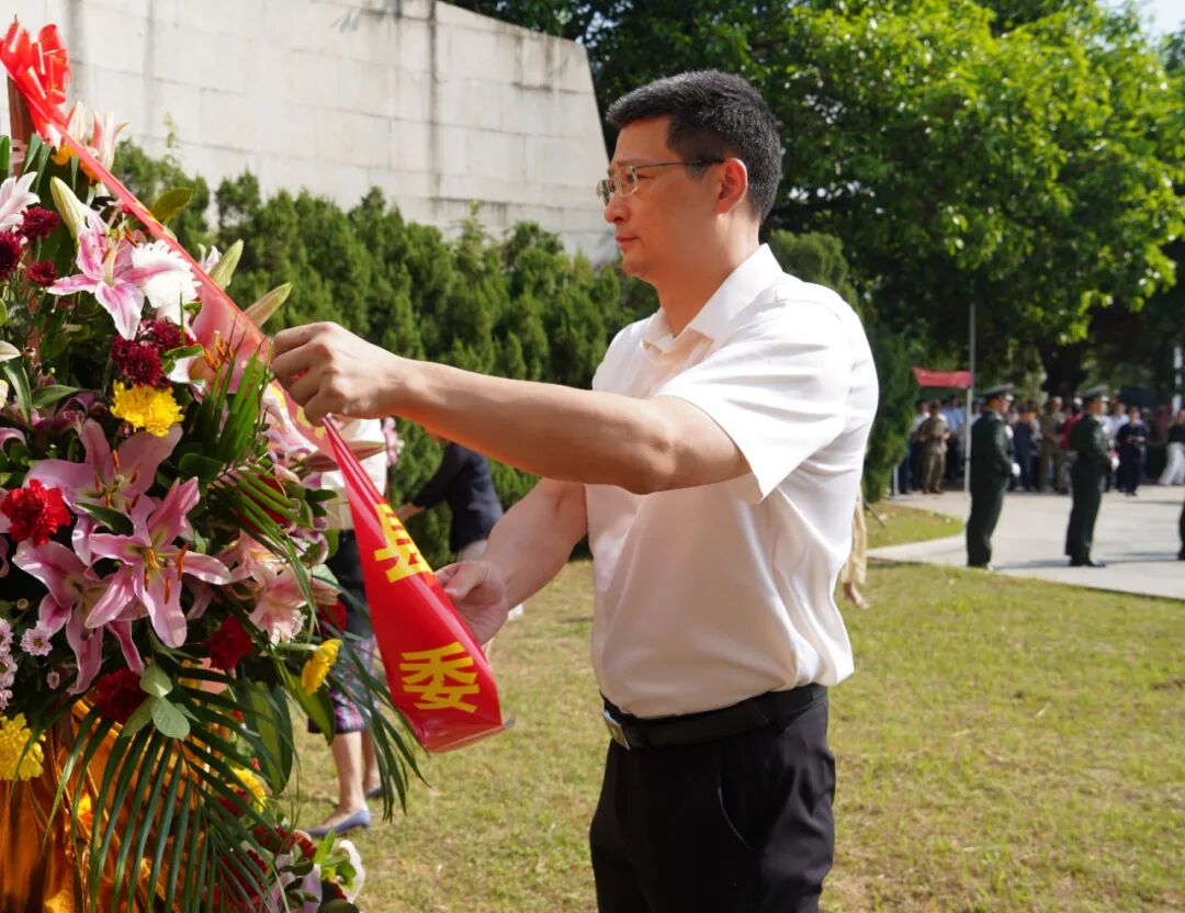 县委常委伊斯凯德主持敬献花篮仪式。县四套班子领导、泉惠石化工业园区班子成员,县法院院长、检察院检察长、惠安经济开发区管委会主任、县国安局局长,驻惠部队领导,原任县正处级以上离退休老干部,各镇党委书记、县直有关单位主要负责同志,社会各界和学校师生代表等参加仪式。