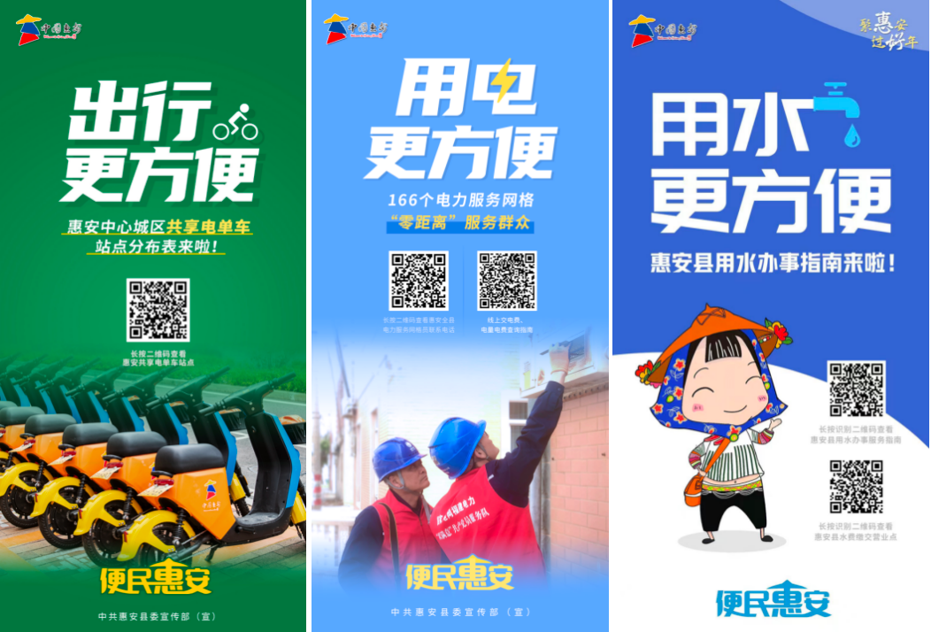 一张海报就是一个便民专题。《看见惠安》将民生服务信息整合浓缩为一张张便民海报,群众只需一键收藏,即可随时查阅。比如惠安全县的公交线路表、电力网格员服务电话、名医工作室坐诊安排等。海报聚焦惠安人民的生活,从交通、用电、用水等点滴小事入手,看似简单的海报,功能性、实用性却很强。