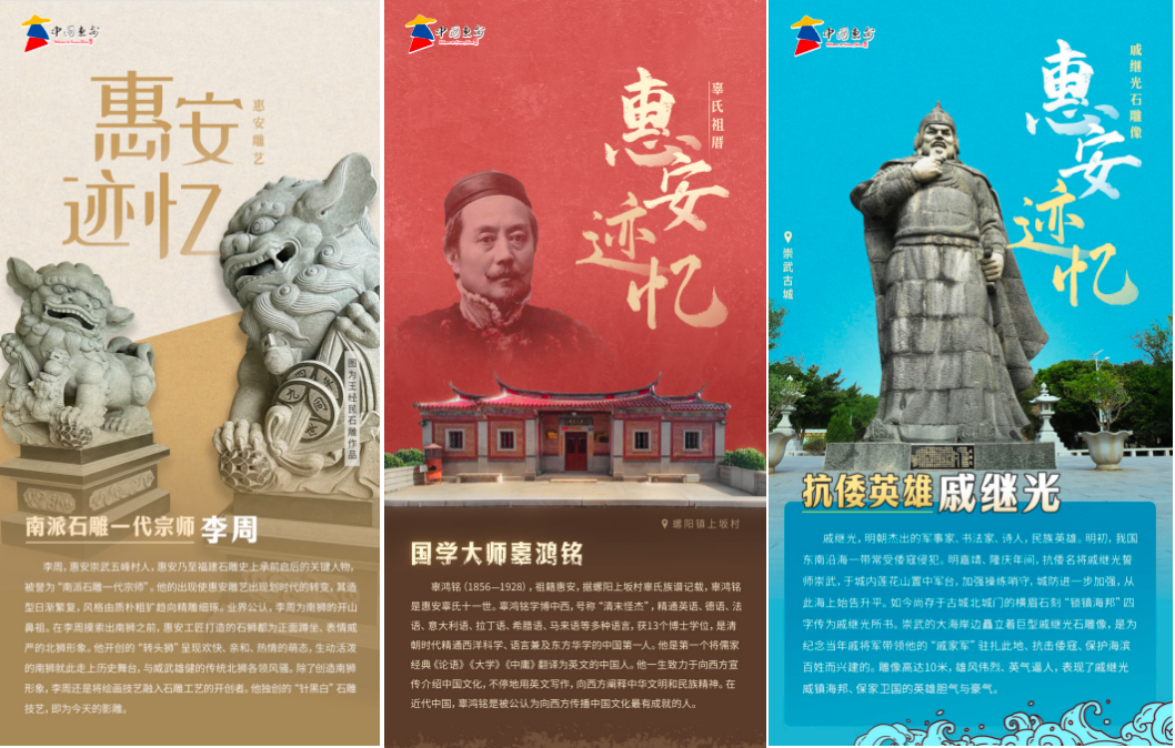《看见惠安》深入挖掘和展现地方文化精髓,为基层治理凝聚精神文化力量。“文化惠安”系列将惠安传统文化进行年轻化表达,创新推介惠女文化、雕艺文化、海洋文化、建筑文化等;“惠安迹忆”系列以惠安历史名人为切入点,深入挖掘文化遗产;“诗意惠安”系列精选名家诗歌,展现诗人笔下的惠安;“故乡惠安”系列展示世界各地的惠安石雕作品,让 “世界石雕惠安造” 深入人心。