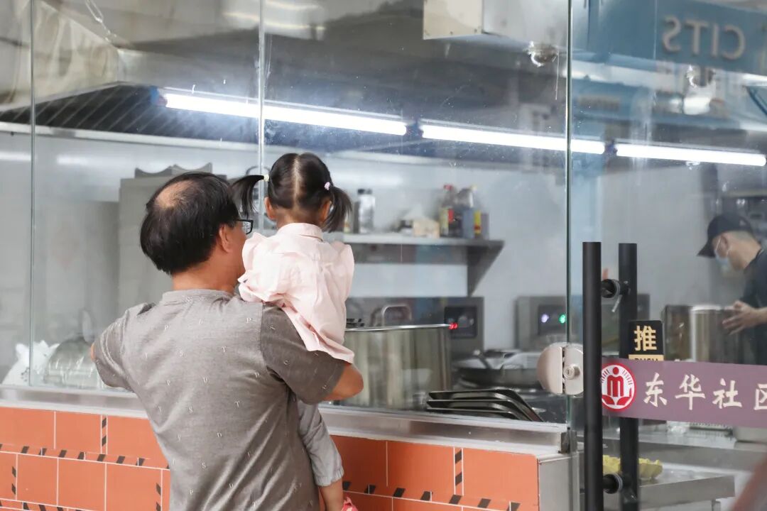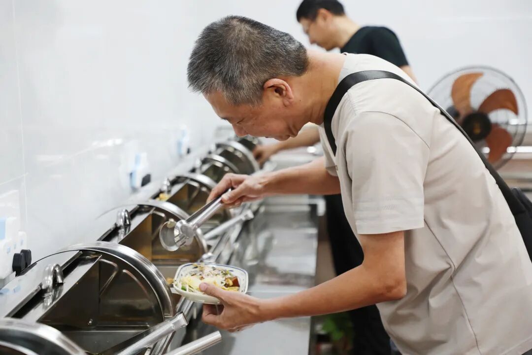 “我选了5.7两菜,才花了十块多,不仅荤素搭配,还能挑自己喜欢的。”家住附近的王阿姨满意地说,自试运营以来,她几乎每天都来食堂吃午餐,“以前一个人总是凑合,煮一顿吃一天,现在方便多了,顿顿都能吃上热乎饭菜。”而透过用餐区和门外的透明玻璃橱窗,后厨操作一目了然,厨师们戴着整洁的帽子和口罩,正有条不紊地忙碌。“能看着他们炒菜,我们吃得也放心。”正在打饭的李大爷笑着补充,“而且菜品丰富,几天都不重样。”