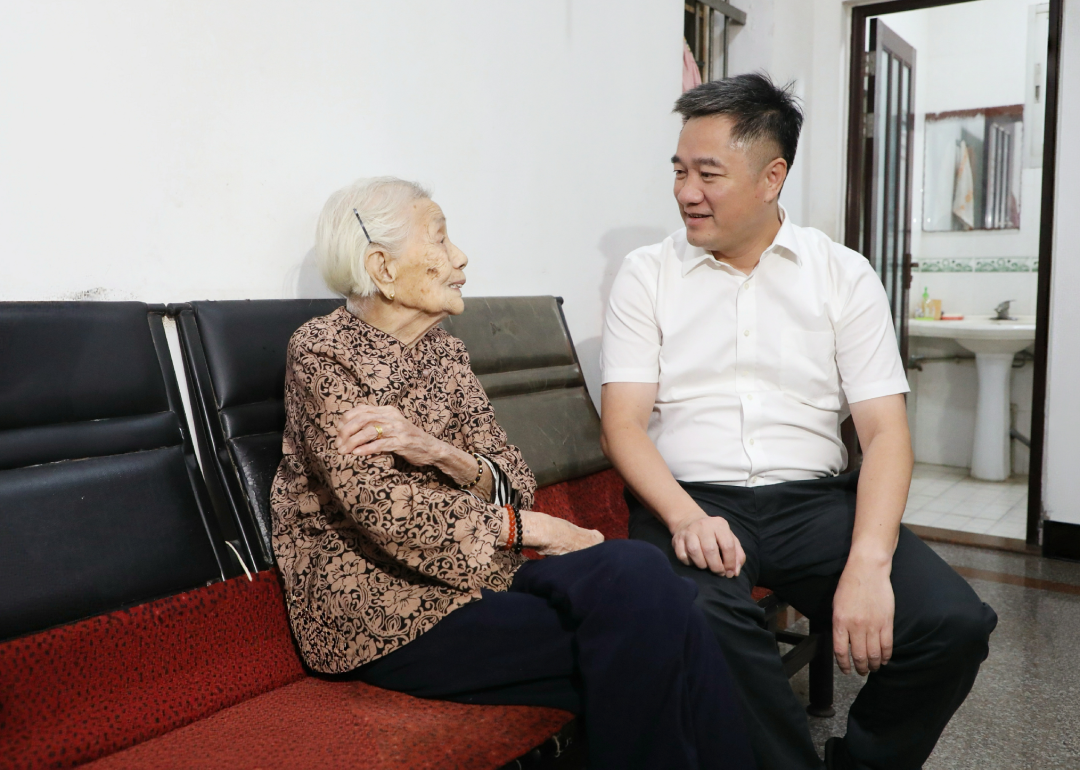 “老人家身体还好吗?”“祝您重阳节快乐,福寿安康!”在江南街道登峰社区百岁老人张群惠和海滨街道水门社区百岁老人蔡丹凤家中,李垂举与老人及家属促膝交流,详细了解老人的健康状况、饮食起居和家庭情况,叮嘱家属要悉心照料老人生活日常,让老人安享天伦、乐享晚年。