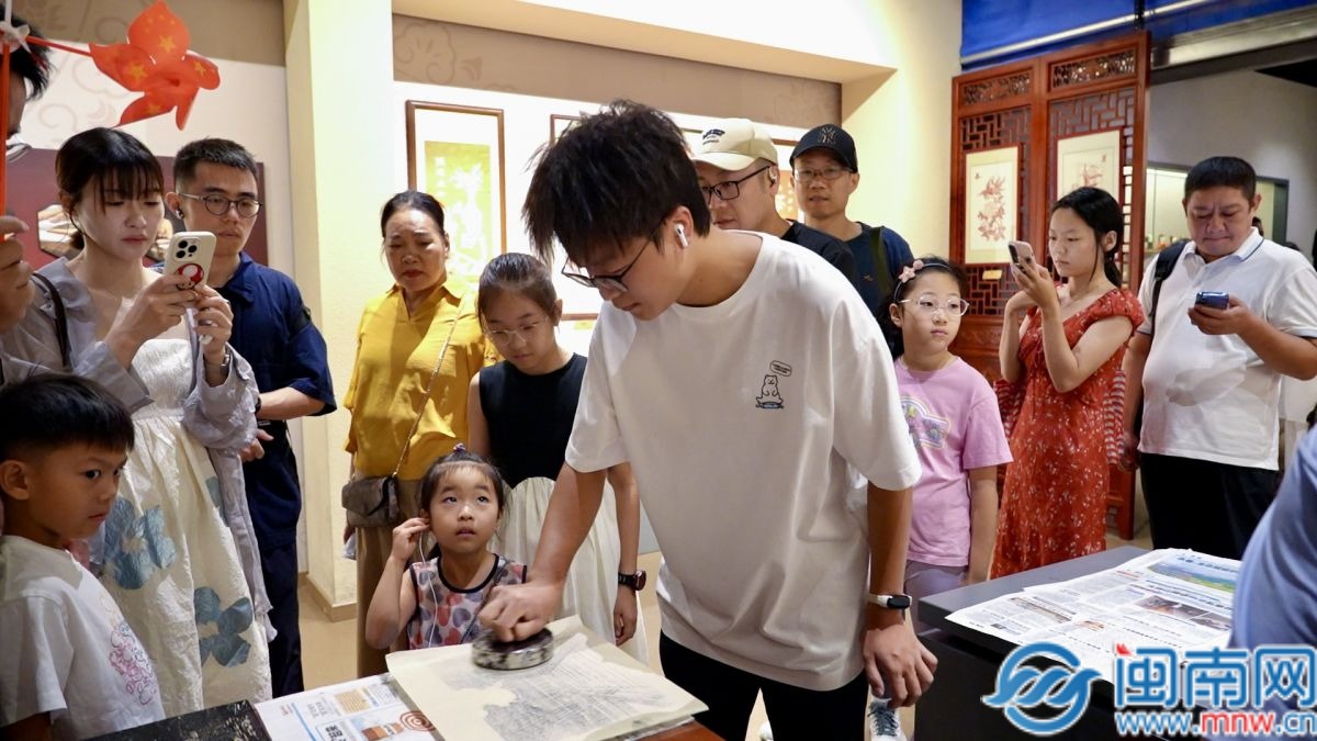 “纸织画始于隋末唐初,千年以来代代相传,流传至今,制作工艺包含画、裁、织、裱等工序。” 在非遗传承人的介绍中,游客们凑近作品,仔细观察纸织画表面的纹理,不少人还拿出手机,对着作品拍照记录。