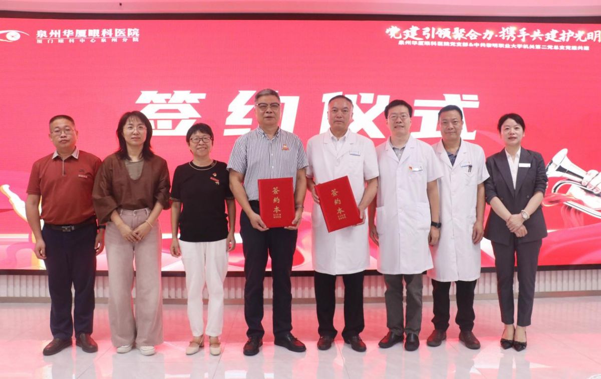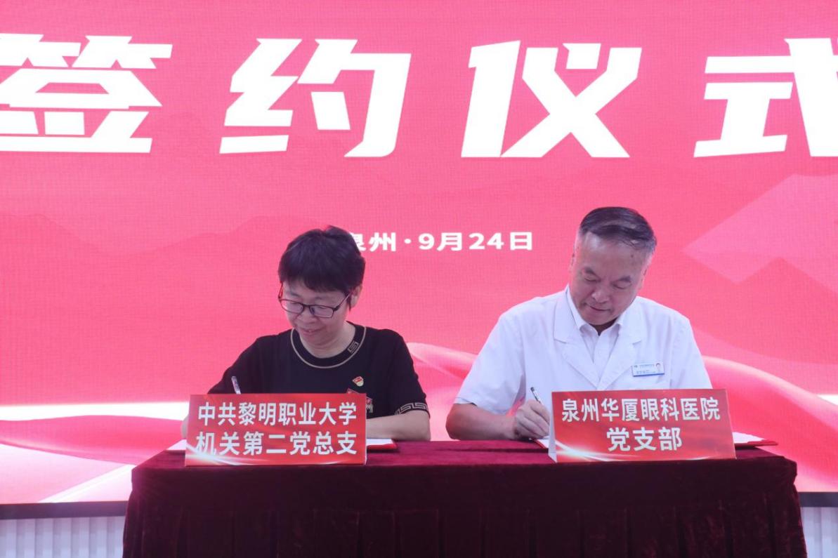 在全体与会人员的共同见证下,黎明职业大学机关第二党总支副书记颜秀春教授与篮球比分直播:华厦眼科医院党支部书记李学喜主任代表双方签署党建共建协议。协议明确,双方将围绕组织建设互促、党员干部互动、党建载体互用、健康服务互联等领域开展深度合作,建立常态化沟通机制,定期开展眼健康科普讲座、义诊筛查、就医绿色通道等惠民服务,切实将党建活力转化为服务效能。