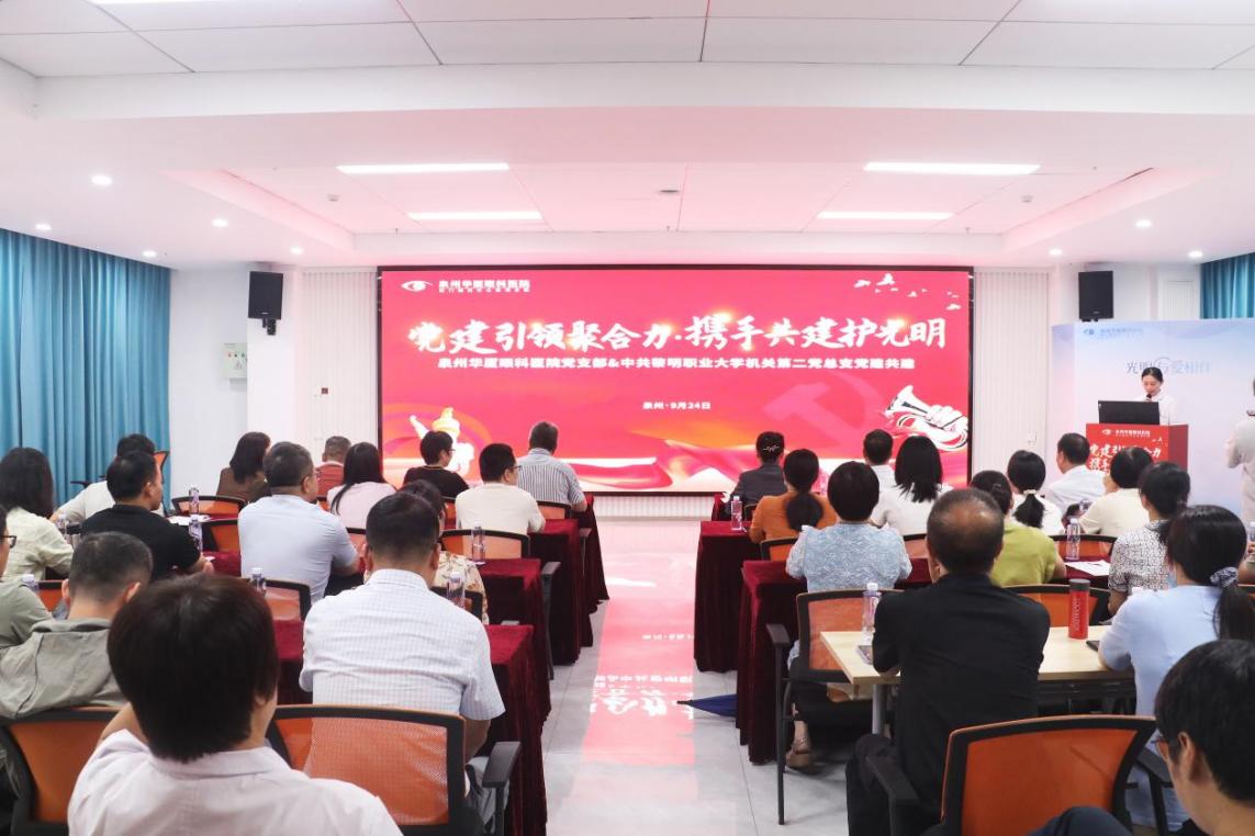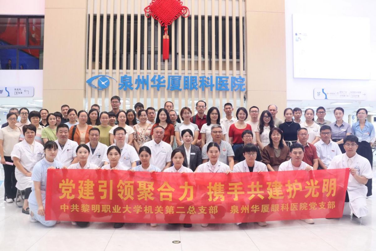 黎明职业大学党委副书记余大杭在致辞中强调:“眼睛是教育工作者感知世界、传递知识的重要窗口。此次共建将党建工作与教职工健康关怀深度融合,是‘师者厚德和医者仁心’是知心交响。希望双方以共建为契机,形成‘组织共建、活动共办、资源共用、服务共推’的党建工作新格局;希望双方在共建的基础,在人才培训交流、科研创新研究等领域进行探索和合作;也希望后续双方可以在儿童青少年近视防控、老年人眼健康等群体的服务上,探索新的合作。”