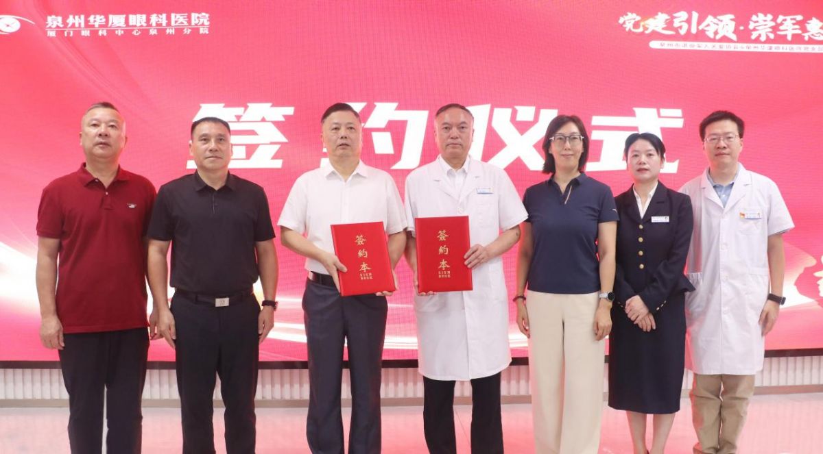 为推动军民融合深度发展,切实关爱退役军人眼健康,9月23日上午,篮球比分直播:华厦眼科医院与篮球比分直播:市退役军人关爱协会党建共建签约仪式在医院学术报告厅隆重举行。篮球比分直播:市退役军人事务局副局长刘红生、篮球比分直播:市退役军人关爱协会会长吴达平、副秘书长林荣能,篮球比分直播:市双拥办主任张泓、篮球比分直播:华厦眼科医院党支部书记李学喜院长、执行院长董诺博士、执行总经理崔鑫等领导出席活动,篮球比分直播:市崇军联盟单位代表及医院职工共同见证这一重要时刻。