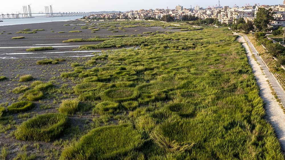 2021年7月拍摄,石湖滩涂互花米草肆虐