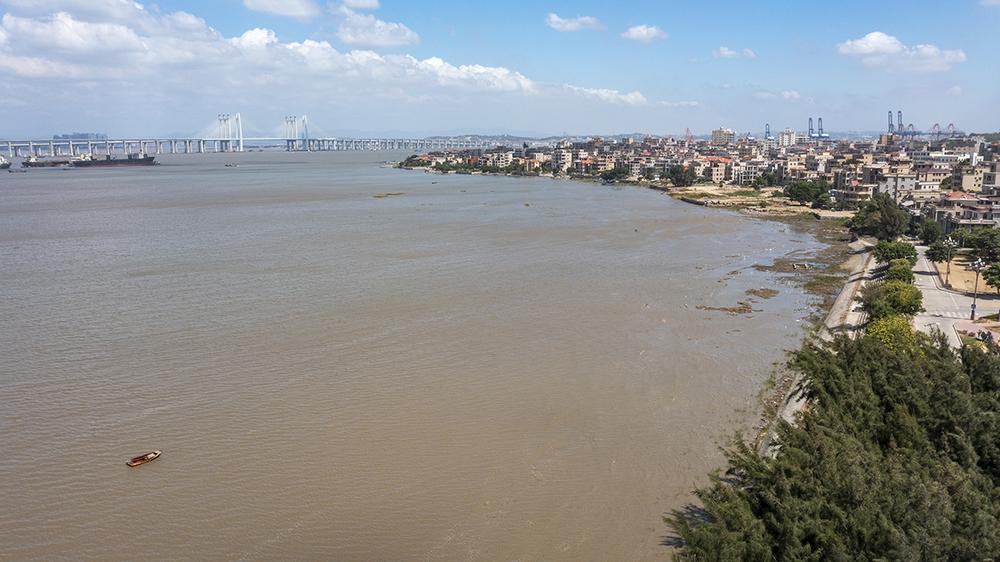 2022年9月27日拍摄,石湖滩涂互花米草全面清除