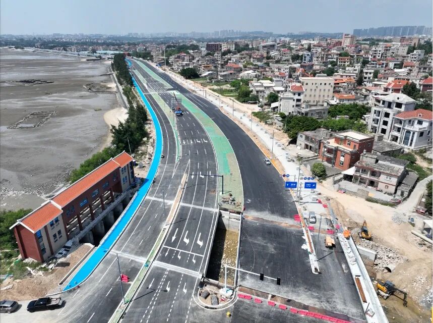接续推进永宁外线二期BC两段(梅林村委会—西岑)提级改造,是今年海岸带开发建设的重头。交建公司相关负责人介绍,率先建设的C段(子英—西岑)工程,始于子英水闸南侧,终点顺接晋石交界处的龙永大桥桥头,全线长约1707米,按一级公路标准改造提升,将此前的双向四车道拓宽为双向六车道,并同步对西岑桥、子英桥进行拓宽,对道路两侧的人行道和沿线景观进行提升。而今,整条主路和沿海一侧的辅道、人行道都已完工,靠村庄一侧的辅道和人行道也在加速推进,“天气持续晴好的话,会督促施工单位加快进度,力争在10月份下旬全部完工。”交建公司相关负责人介绍。