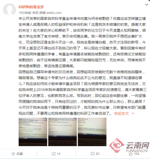 她还在帖文中指出,“刘梦洁同学的剽窃行为不同于一般的学术剽窃,因其剽窃的是有保密规定的国家自然科学基金项目申请书,由于她的剽窃行为,严重影响了我博士论文的重复率及学术声誉。”