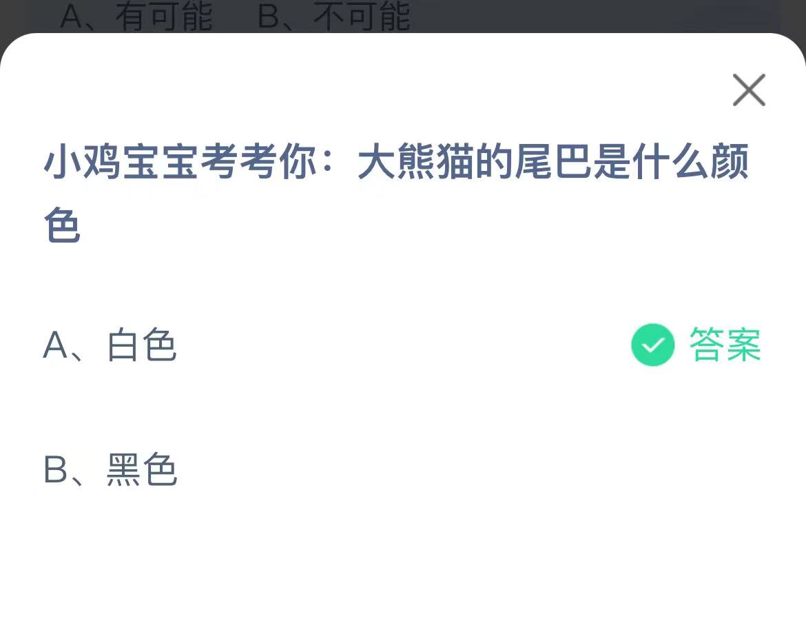 大熊猫的尾巴是什么颜色蚂蚁庄园,支付宝小鸡庄园9月4日正确的答题答案是什么,有很多小伙伴可能想知道蚂蚁庄园免费小鸡饲料大熊猫的尾巴是什么颜色问题的答案,那下面就一起来看看9月4日大熊猫的尾巴是什么颜色蚂蚁庄园小鸡正确的答案领取饲料吧。