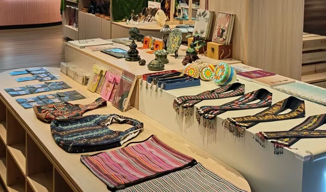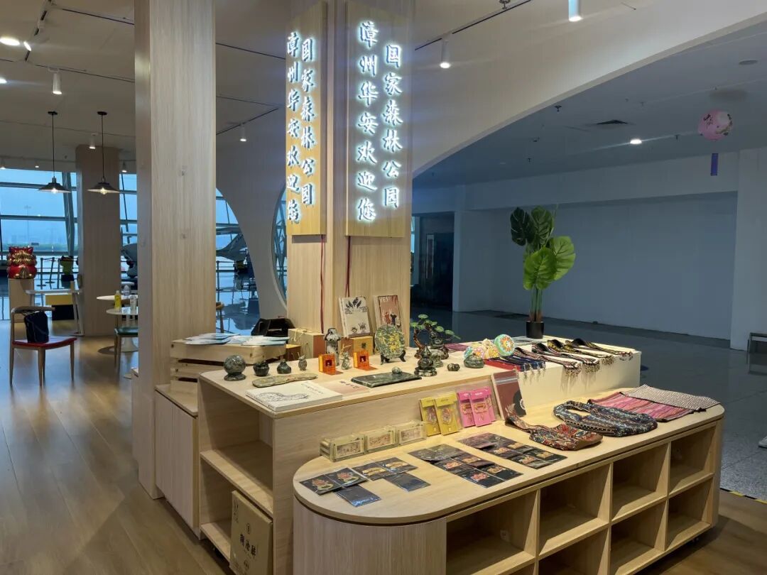 在福州长乐国际机场、厦门高崎国际机场的几何之厦·书店内,书籍的墨香与来自华安的玉石摆件、华安土楼、畲族与高山族文创产品所散发的文化气息悄然交融,形成一处融合阅读与地域美学的独特空间。