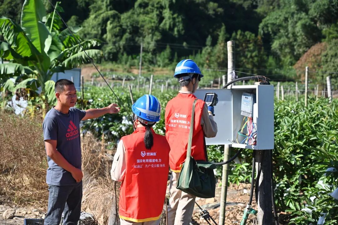 国网长泰区供电公司岩溪供电所组织国家电网福建电力(长泰龙江韵)“双满意”共产党员服务队,走进岩溪镇石铭村芭乐种植基地和玫瑰庄园,开展用电服务走访。