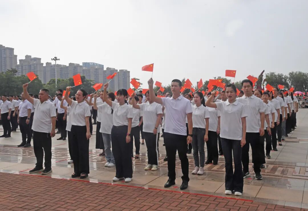 上午9时15分,升国旗仪式正式开始。伴随着一声响亮的出旗口令,国旗护卫队方阵迈着整齐有力的步伐,阔步走向升旗台。雄壮的中华人民共和国国歌奏响,旗手振臂扬起,鲜艳的五星红旗迎风招展、冉冉升起。全体人员肃然而立,向国旗行注目礼,齐声高唱国歌,共同祝愿伟大祖国更加繁荣富强、人民生活更加幸福美好。