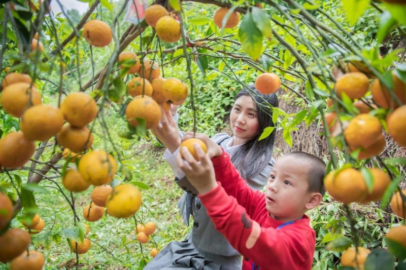 上沙村引进优良柑橘品种,吸引游客前来自助采摘(康庆平 摄)