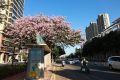 11月7日立冬当日,石狮市迎来暖阳天气,宋塘路两侧美人树花开正艳,粉红花海吸引众多市民驻足观赏、拍照留念。其中,位于“老干中心站”公交站台
