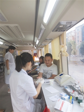 本报讯10月10日上午,记者途经石狮市八七路德辉广场门口,发现一辆无偿献血车停在那里。几位在德辉广场开出租车的司机正在无偿献血车上作献血前检查。
